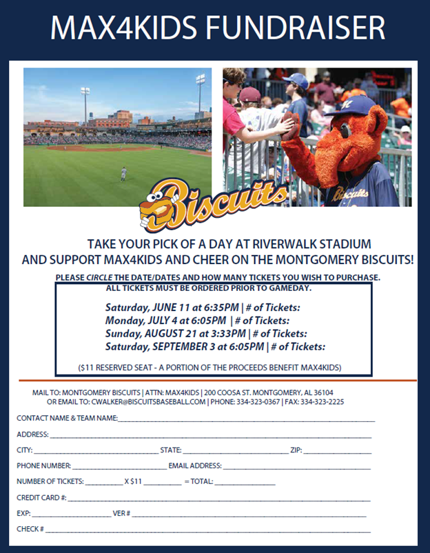 MAX4Kids Ticket Fundraiser: Montgomery Biscuits