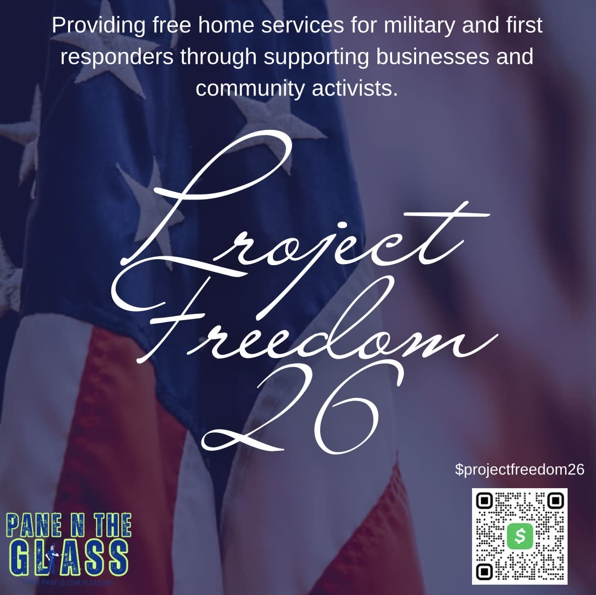•Pane N The Glass is proud to announce its official launch, Project Freedom 26! A new initiative dedicated to serving those who serve our communities. Starting January 1,2026, the program will offer a wide range of free home maintenance and repair services to ALL active-duty military personnel, veterans, and first responders (police, fire, and EMTs) in the local area who could benfit from this service. This will offer Window Cleaning,Pressure Washing,Gutter Cleaning,Yard Work(subbed out) to said participants for no charge to them at all.